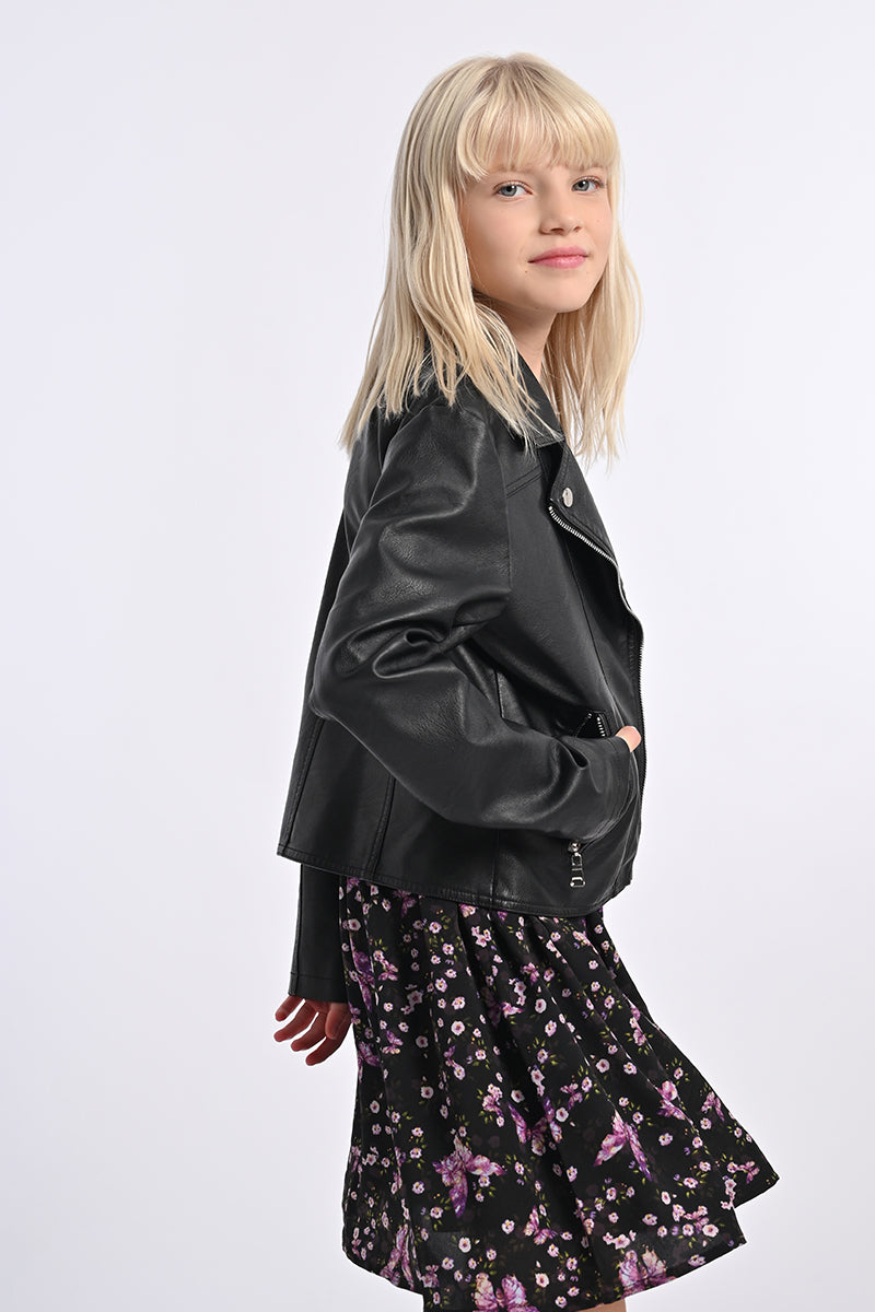 Molly Bracken Girl unveils a season that blends rock spirit with bohemian touches. A vinyl jacket and vegan leather shorts pair effortlessly with soft knits stitched with heart motifs. Stripes, oversized checks, animal prints, and all-over florals set the rhythm of the wardrobe.